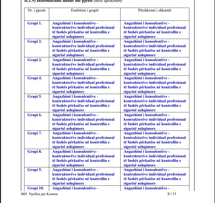 Kontratat do të kenë një kohëzgjatje prej 36 muajsh, ndërsa vlera e përgjithshme e tenderit është parashikuar në 518 mijë e 400 euro.
