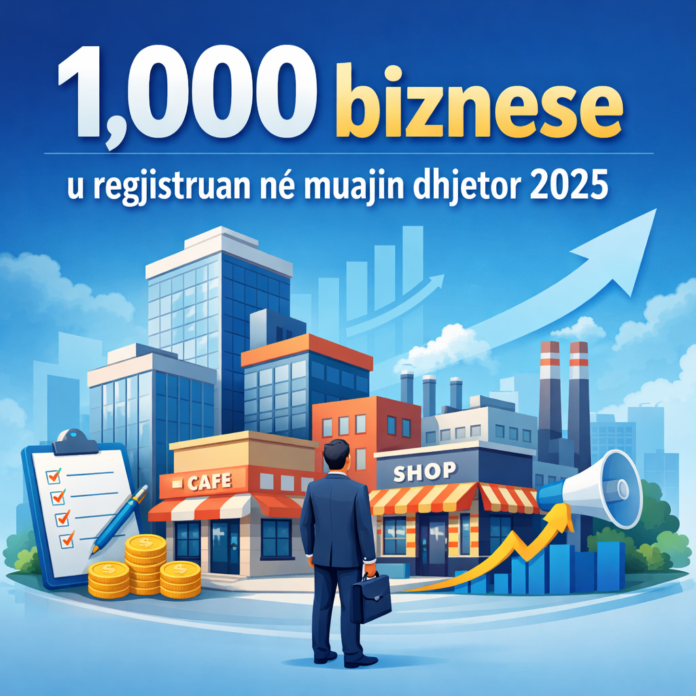 Në muajin dhjetor të vitit 2025, janë regjistruar 1,000 biznese. Sipas Agjencisë së Statistikave të Kosovës- ASK, krahasuar me muajin paraprak, kemi ngritje për 8.8% të ndërmarrjeve të regjistruara.