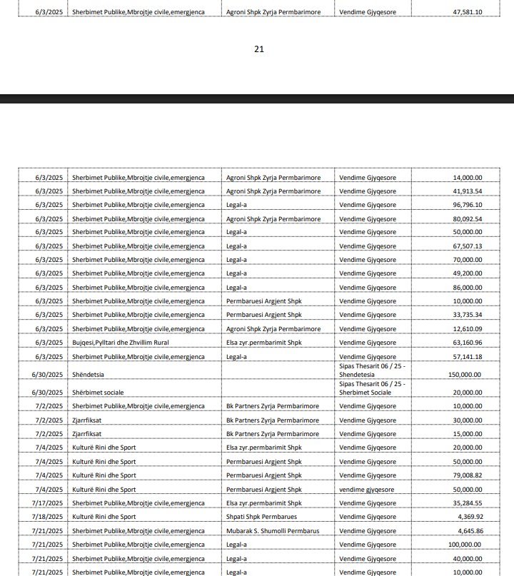 Nga kjo kategori, gjatë vitit 2025 janë shpenzuar: 4,052,091.71 euro për vendime gjyqësore
