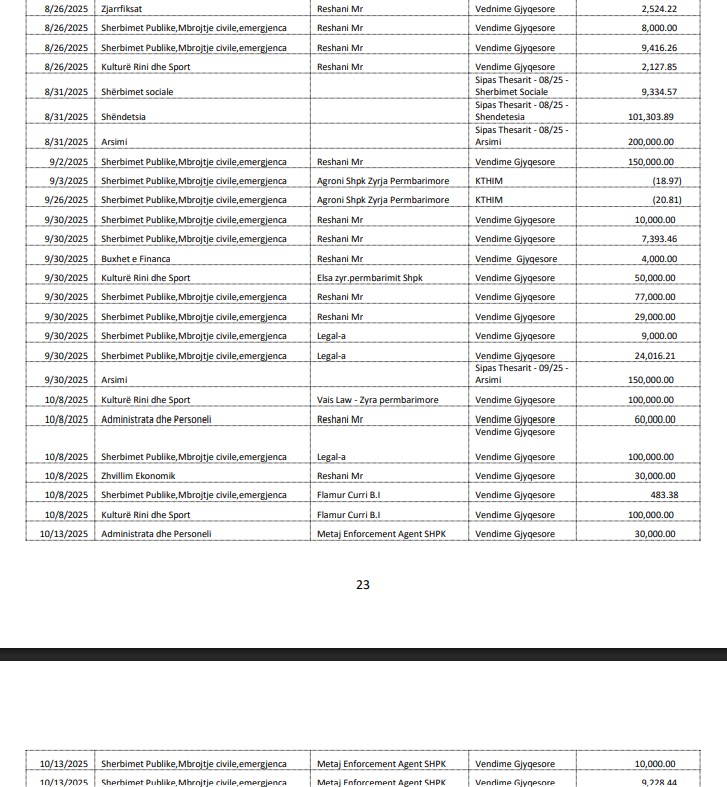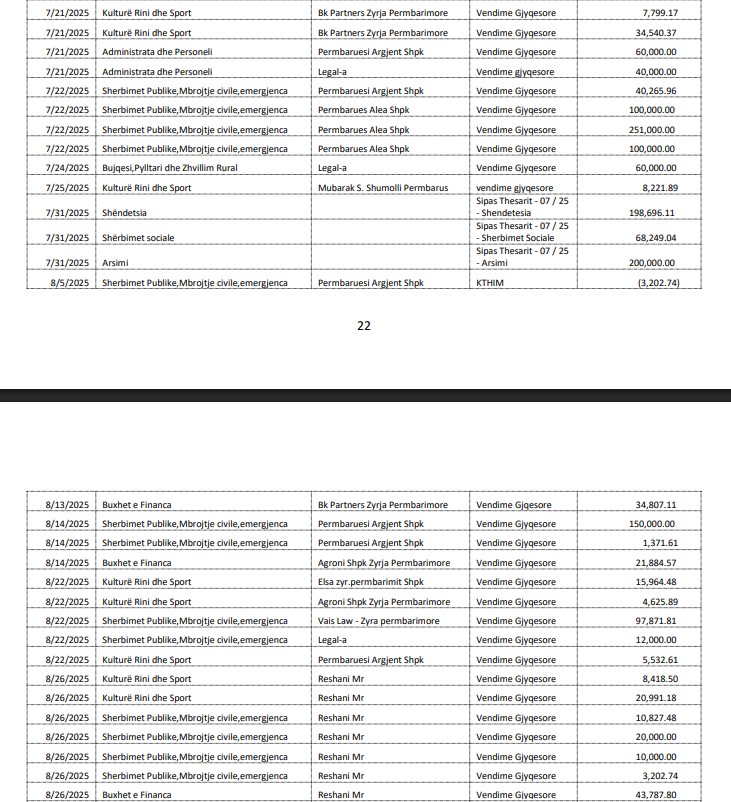 Këto shpenzime janë shpërndarë pothuajse në të gjitha drejtoritë komunale nga Zyra e Kryetarit, Administrata, Arsimi e Shëndetësia, deri te Shërbimet Publike, Emergjenca dhe Zjarrfikësit duke dëshmuar për një problem sistemik të menaxhimit të kontratave, procedurave dhe kontesteve ligjore.