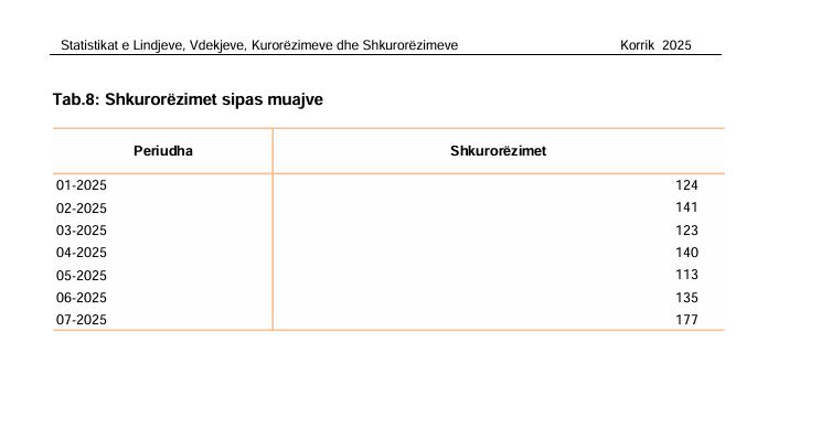 Kulmi i shkurorëzimeve për këtë periudhë është regjistruar në korrik me 177 raste, që përbën një rritje prej 31 për qind krahasuar me muajin qershor.