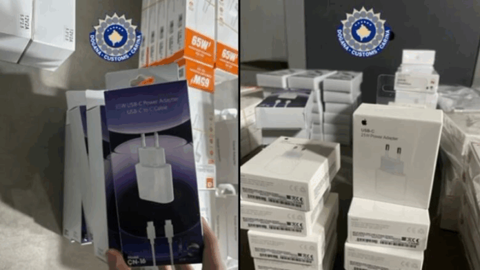 Në total janë sekuestruar 431 copë adapterë të markave të mbrojtura si Samsung dhe Apple, të cilat janë dërguar për verifikim në Sektorin për Pronësi Industriale (DPI).