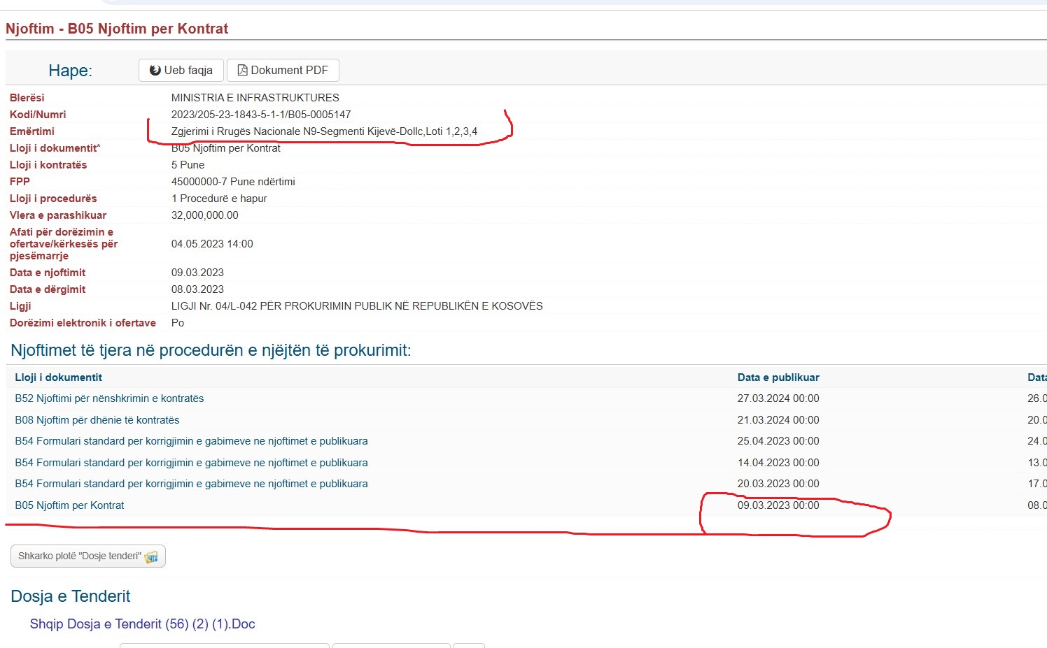 Sipas dosjes së tenderit, afati për përfundimin e punimeve për zgjerimin e kësaj rruge është 36 muaj.