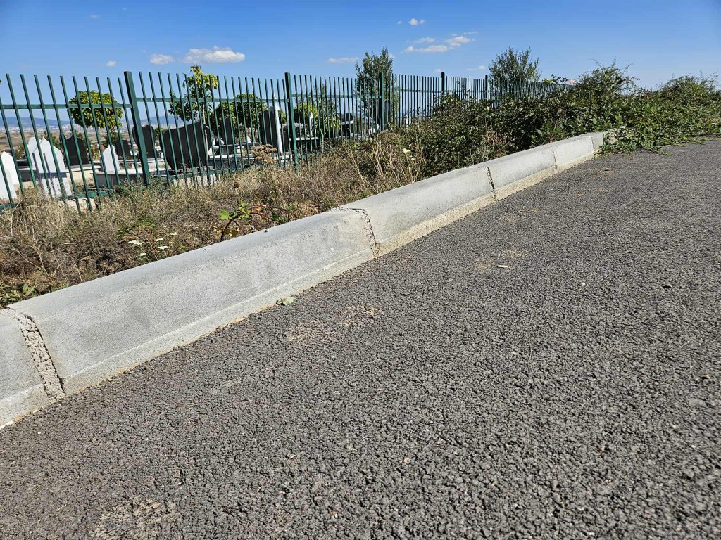 - Vendosja e anësoreve të betonit (kufitar) me dim. 18x24x15x100 cm. Kontrata: 167.80 m x 7.00 € = 2,100.00 €. Realizuar: 132.00 m x 7.00 € = 925.40 €. Diferenca: 1,174.60 €.