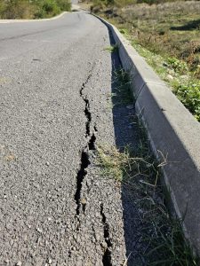 (Qarja e asfaltit për shkak të mungesës së shtresave konstruktive prej 85 cm)