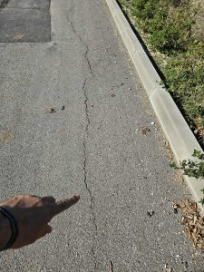 (Qarja e asfaltit për shkak të mungesës së shtresave konstruktive prej 85 cm)