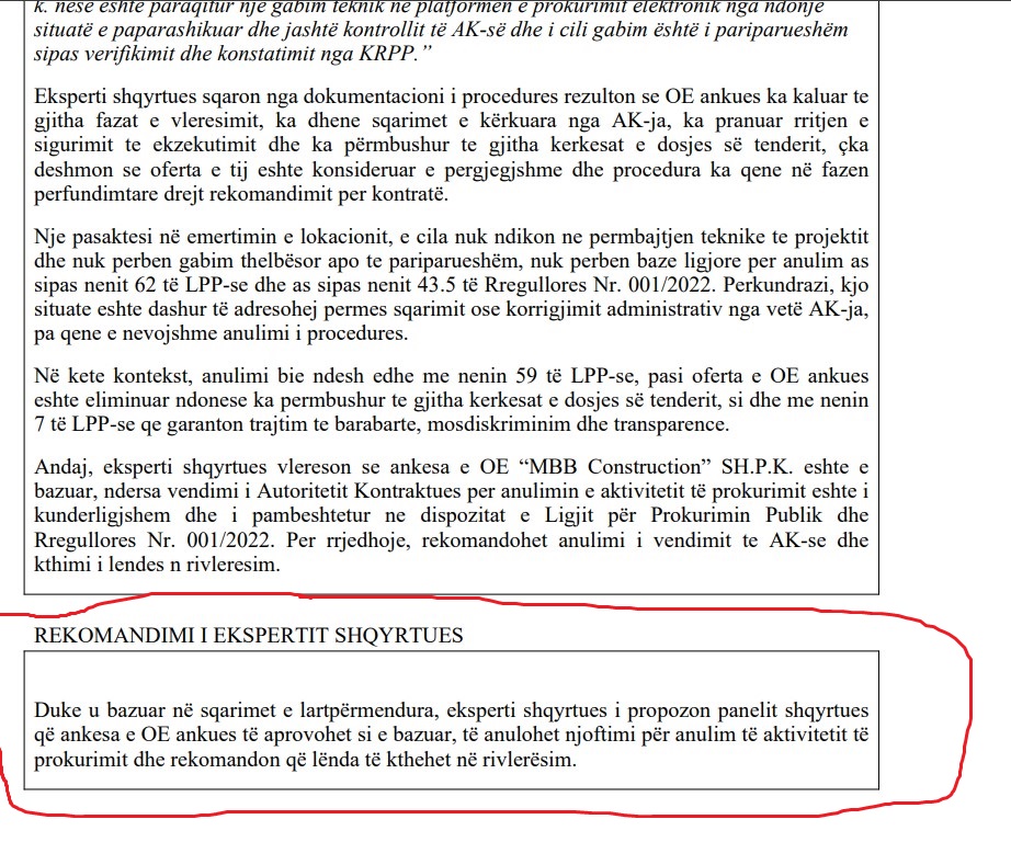 Edhe pse vendimi nuk është ende i plotfuqishëm pa verdiktin e panelit, mesazhi është i qartë se procedura është zhvilluar në kundërshtim me Ligjin për Prokurimin Publik, ndërsa anulimi është mbështetur në arsyetime administrative që nuk qëndrojnë juridikisht.
