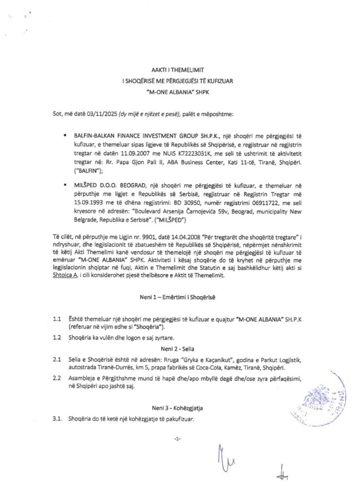 Kjo ndërmarrje e sapokrijuar është themeluar nga kompania Balfin B.V., PIAZ Investment DOO dhe biznesmeni Juljan Mane, në bazë të një marrëveshjeje për shitblerje të aksioneve mes palëve.