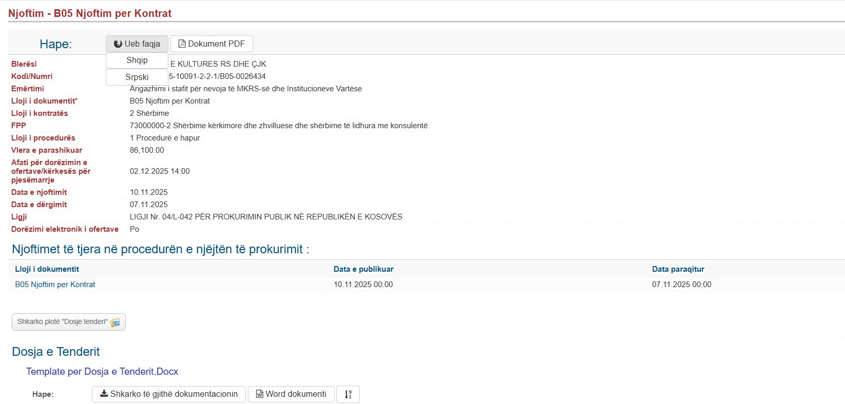 Ministria e Kulturës, Rinisë dhe Sportit ka ndjekur një praktikë të dyshimtë ligjërisht në mënyrën se si po angazhon personel për institucionet e veta vartëse. Në vend se të shpallë konkurse të rregullta për punësim në shërbimin civil, MKRS ka zgjedhur të hapë një tender me titull “Angazhimi i stafit për nevoja të MKRS-së dhe institucioneve vartëse”, me vlerë të parashikuar 86,100 euro për periudhë trevjeçare.