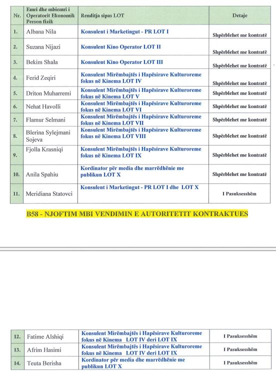 Sipas të dhënave të publikuara në platformën online të prokurimit, MKRS ka hapur tender për angazhimin e konsulentëve profesionalë, duke shpërblyer kandidatë me kontrata njëvjeçare, për nevoja të ndryshme të ministrisë dhe institucioneve vartëse të saj.