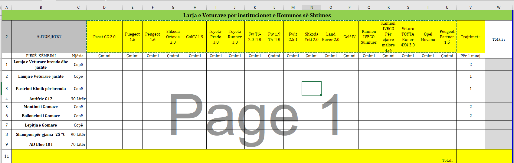 “Pasat CC 2.0 Puegeot 1.6 Peugeot 1.6 Shkoda Octavia 2.0Golf V 1.9 Toyota- Prado 3.0 Toyota Runner 3.0 Fë T6- 2.0 TDI Fë 1.9 T5 TDI Fëlt 2.5D Shkoda Yeti 2.0 Land Rover 2.0 Golf IV Kamion IVECO Sulmues Kamion IVECO Për zjarre malore 4×4 Vetura TOYTA Runer 4X4 3.0 Opel Movano Peugeot Partner 1.5”./Kujdestari.info/.