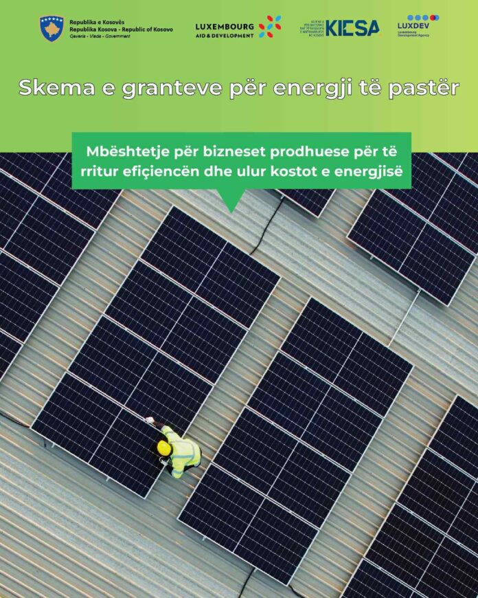 Nesër mbyllet thirrja publike për Skemën e Granteve për Energji të Pastër të ndërmarrjeve prodhuese dhe përpunuese, nga e cila skemë, bizneset do të përfitojnë deri në 20,000 euro për një masë të vetme dhe deri në 25,000 euro për masa të kombinuara.