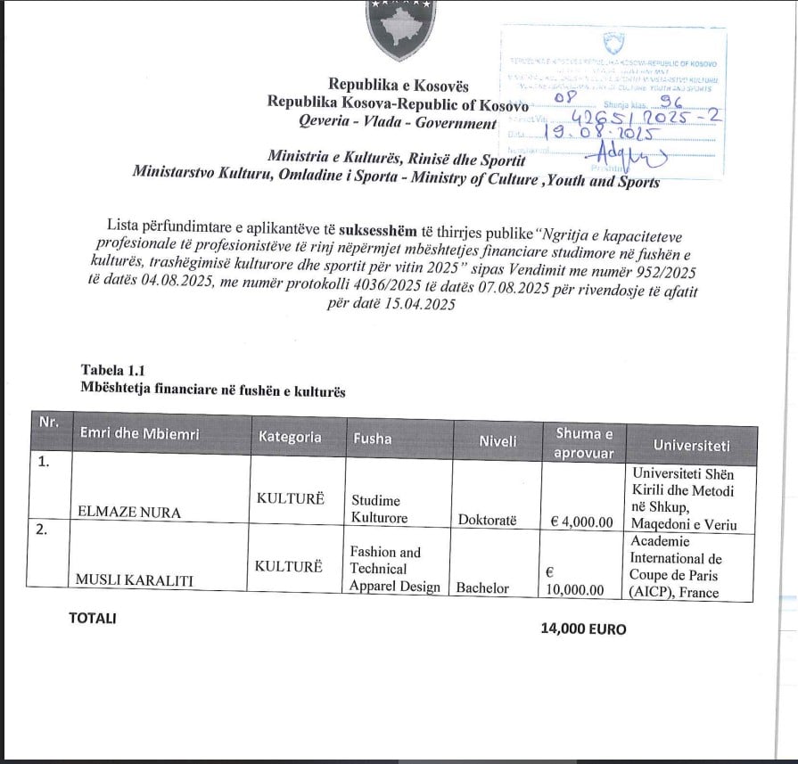 Në këtë procedurë, si operator i rekomanduar për kontratë është përzgjedhur kompania N.SH. “2 B”, me çmim për njësi prej 922.34 euro, ndërsa marrëveshja do të zgjasë për 24 muaj (2025–2026).