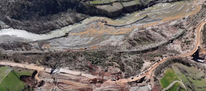 Lumi i devijuar nga mbetjet e gërmimeve, tani po gërryen pjesët e poshtme të rrugës së re dhe asaj ekzistuese. Pa mbështetjen e bazamentit lumor, masivet e dheut kanë humbur ekuilibrin, tha eksperti.