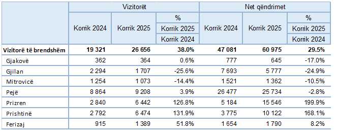 Në anën tjetër, numri i vizitorëve të huaj në hotelet e Kosovës arriti në 50 825, duke regjistruar një rritje prej 33,3% krahasuar me korrikun e vitit 2024.