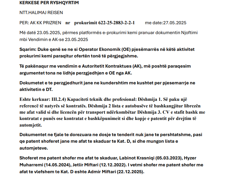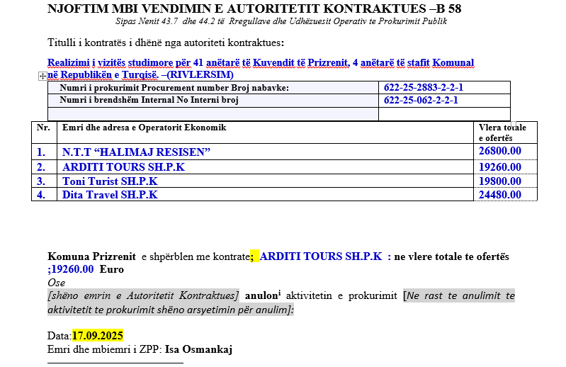 Pas gjithë kësaj përplasjes mes operatorëve dhe komunës së Prizrenit, Arditi Tours kishte dal triumfues pasi me 17.09.2025 ishte shpallë fitues i këtij tenderi. /Kujdestari.info