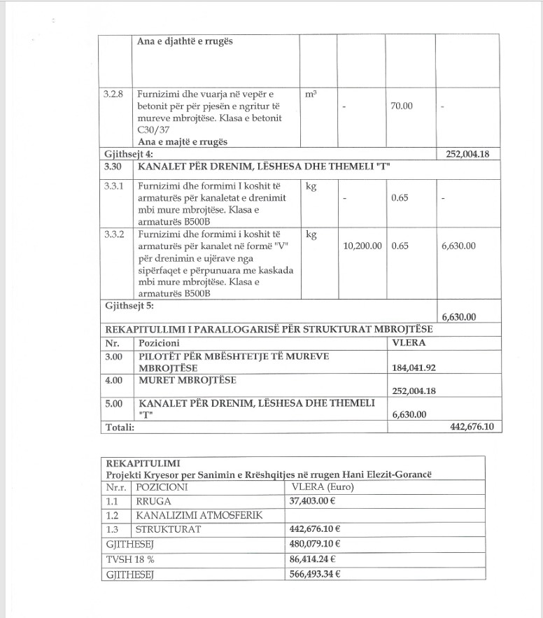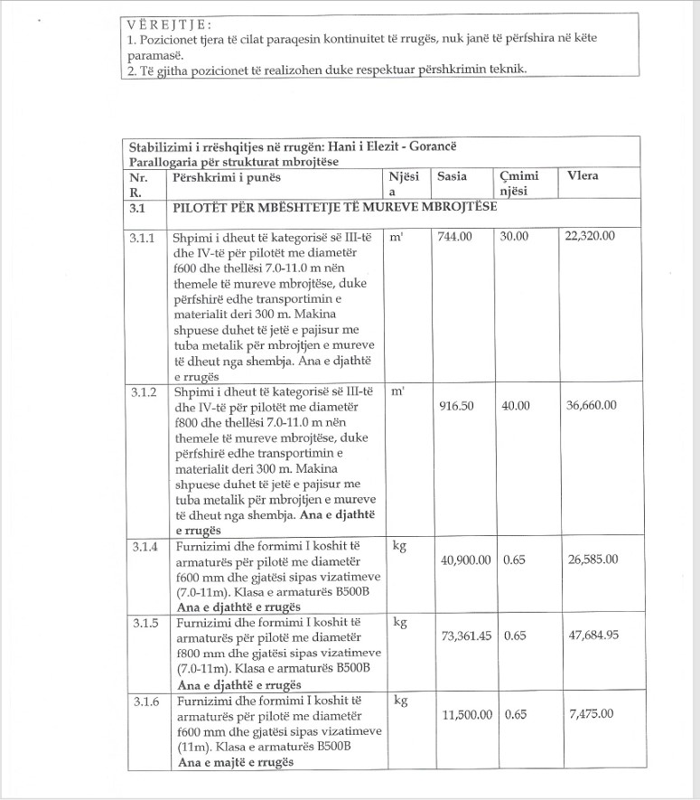 - Janë faturuar 6,580 m² punime që nuk janë vendosur; 2,400 m³ punime që nuk janë realizuar; dhe 1,350 m² gurë të thyer që nuk janë përdorur, megjithëse figurojnë të paguar.
