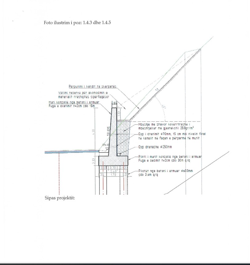 - Rrënimin e plotë të murit mbrojtës dhe ribërjen nga e para, bashkë me themelet dhe pilotët, sipas standardeve.
