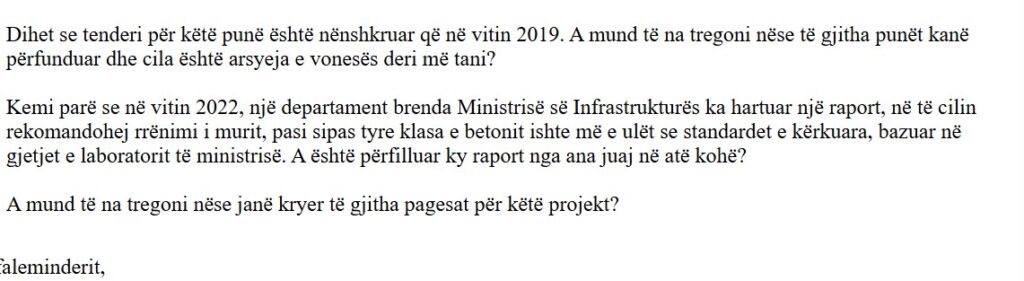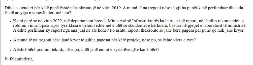 Kujdestari.com ka dërguar pyetje zyrtare te Ministria e Infrastrukturës: