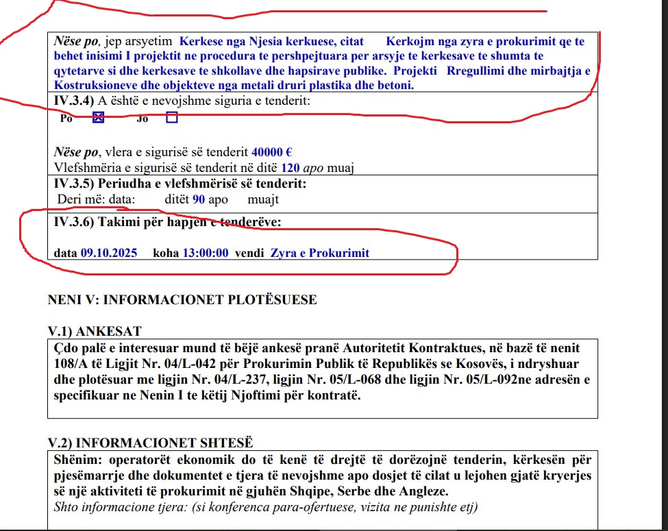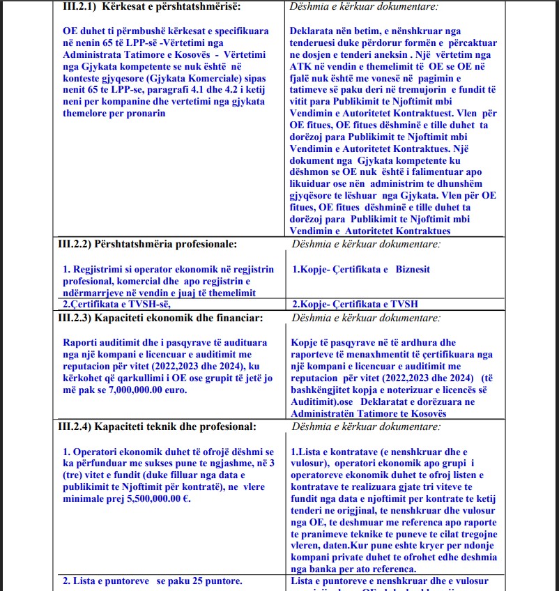 Kjo procedurë e tenderimit aktualisht është në fazën ku kompanitë e interesuara mund të paraqesin kërkesa për sqarime. /Kujdestari.info/