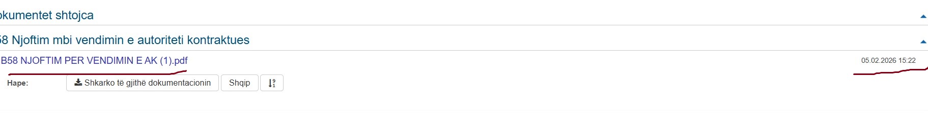 Sipas të dhënave zyrtare të publikuara në platformën e E-prokurimit, njoftimi për dhënie të kontratës është publikuar më 5 shkurt 2026, ndërsa dokumenti është ngarkuar në sistem në fund të po asaj dite, rreth orës 24:00. Nënshkrimi i kontratës është planifikuar për 6 shkurt 2026, vetëm një ditë më pas. Sot (10 shkurt), është ngutur në sistemin e E-porkurimit edhe dokumenti “njoftim për nënshkrimin e kontratës”.